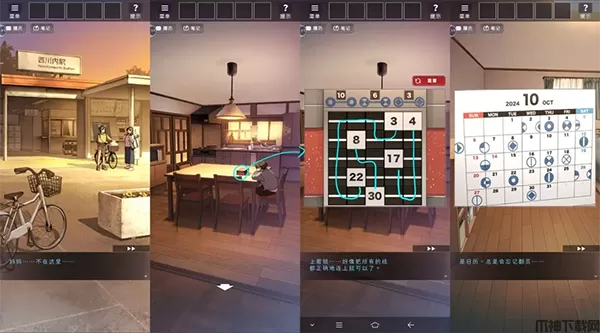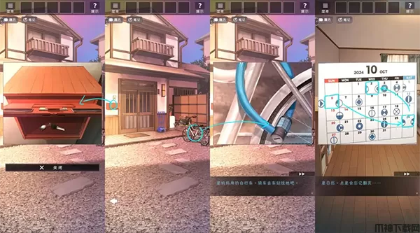 随后使用自行车前往车站,完成对话后回到客厅,通过日历提示解锁桌面上的盒子。
