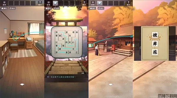 彼岸花是一款治愈风日系剧情解谜游戏,玩家在游戏中扮演一个少女,在神社前偶遇了一位幽灵男子,将帮助他完成一些遗憾,于是二人开启了一场解谜之旅。玩家需要仔细查探场景,获取道具,将道具组合解开谜题的答案,在解密过程中玩家将会发现神秘幽灵的身份,拾起重要回忆!彼岸花逃脱游戏采用关卡制,一共八个章节,内设两个结局,每一关的不同阶段可以查看对应的提示和答案,即时是解谜新手也能顺利玩至结局。与神秘幽灵一起互相协助,找出谜题的答案吧!