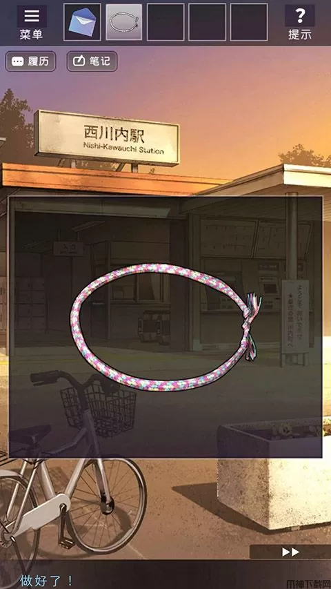 前往后山将福纸泡水得到图案,调查水中发光点得到储物柜钥匙,前往车站打开储物柜得到折纸。