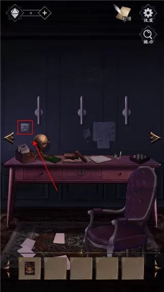 1、进入游戏,过完开场漫画,点击右边第一幅画像,按照指引将道具栏钥匙拖至锁区域,解锁日记本。