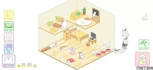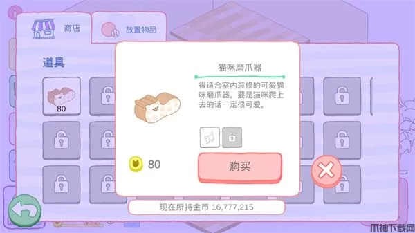 可以购买猫抓板,猫塔等等,也可以买新的房间哦!
