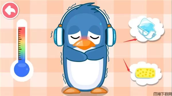 3、点击体温计给小动物量体温,发现体温高过。