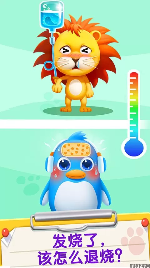 宝宝巴士宝宝医院官方版是宝宝巴士旗下的一款儿童启蒙教育游戏,游戏中主要讲述了医生如何帮助里面的需要的小动物进行治疗,整个的画风都是温馨,可以帮助小朋友有效的缓解对于医院的恐慌感。在游戏中小朋友将成为一位可爱的小动物成为医生,在这里需要面临各种小动物前往医院进行治疗,通过小动物描述自己的病情是怎样来的,并对其使用需要的压力器材进行诊断,最后给小动物进行治疗,帮助他回复健康的状态。目前,游戏中一共拥有7种玩法,每一种玩法里面都有着不同的小动物需要你来治疗。