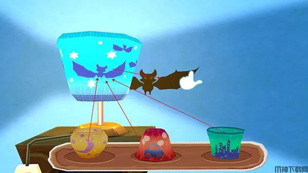 之后就可以开始捕捉影子游戏啦,点击下方的蝙蝠台灯罩,然后就可以捕捉蝙蝠影子啦,还有其他两个灯罩,点击影子也会有变化,但是不会捕捉。