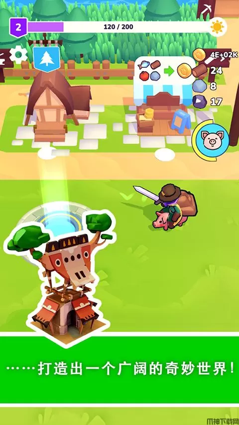 随后玩家可以购买新的土地,同时你也将解锁新的建筑物,用金币升级装备和建筑,也可以继续探索地图,寻找更多种类的资源。