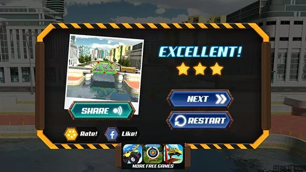 正如上述所言,尽管桥梁设计师游戏的玩法不算太难,但是如果你想要玩得更好,不断的刷新已有的记录,那么你确实需要下一番苦功。毕竟如何能在有限的材料中建造出一座座坚固又耐用的桥可是每位设计师所毕生追求的梦想,无一例外。前期的话,材料种类少,桥的长度也比较短,玩家们的通关难度就比较小。但是一旦到了桥梁设计师游戏的后期,那么玩家们所要思考的内容就会变得更多,稍不留意就可能导致桥面坍塌。不过好在这只是在游戏中,玩家们有着无限试错的机会,一次不行,多来几次总能成功。相信你能够在这一次次的实践中总结出其中的技巧,然后以最少的材料刷新纪录,通过一个又一个的关卡。喜欢此类益智玩法的小伙伴杆件来下载试试吧!