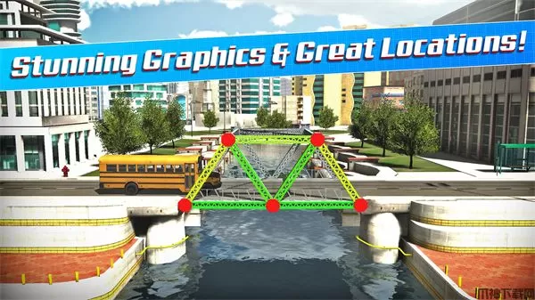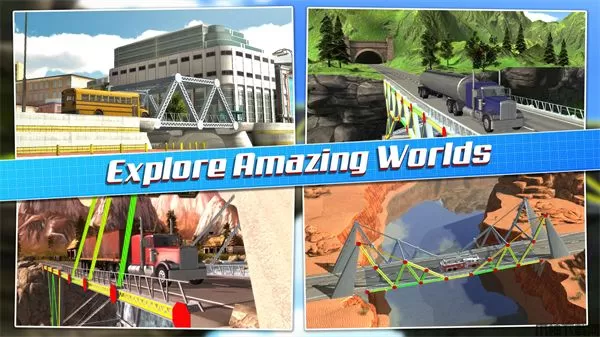 桥梁设计师游戏最新版本(Bridge Construction Simulator)是一款以设计建造为主题的休闲益智类手游,该版本是时下最新版本,修正了一些小错误,能够使玩家获得更为舒适的游戏体验,快来试试吧!就游戏本身而言,它的玩法也不算太难,和大家平时所熟知的轨道建设类似。玩家需要利用手中现有的建筑材料,在不同的地方建造桥梁,保证车辆可以安全通过即可。如果你用的材料越少,通关后的得分也就越高。