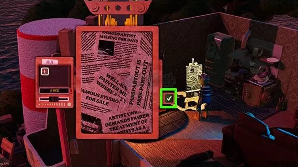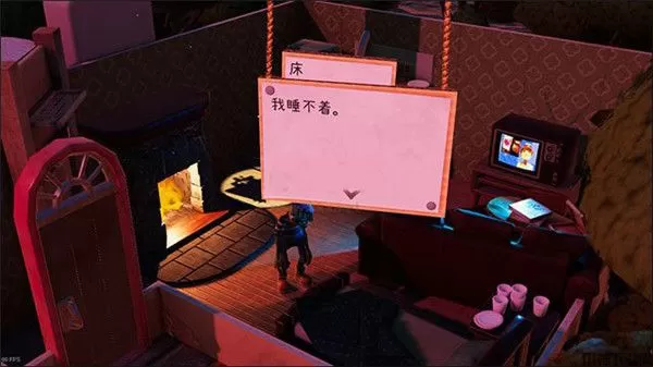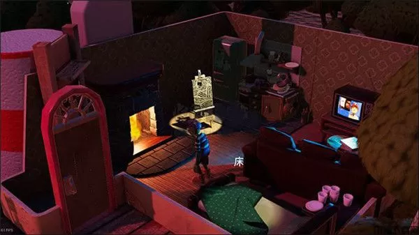 2、在这里玩家可以和房间内的物体互动,可以互动的有画架(进入主线)、床、电视等