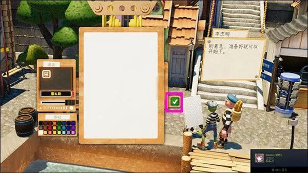 4、接着,在这里点击画架,在这块画板上画出自己的满意作品,点击确认键