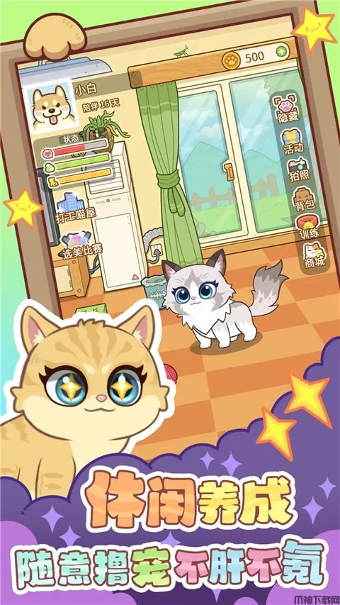 云爪星是一款以养宠为核心的放置类休闲游戏,玩家可以选择小猫或者小狗进行云养宠,并提供指令训练玩法,玩家能对宠物训练不同的指令,坐趴跳以及摇尾巴都能做到,还能与爱宠一起玩耍和旅游。