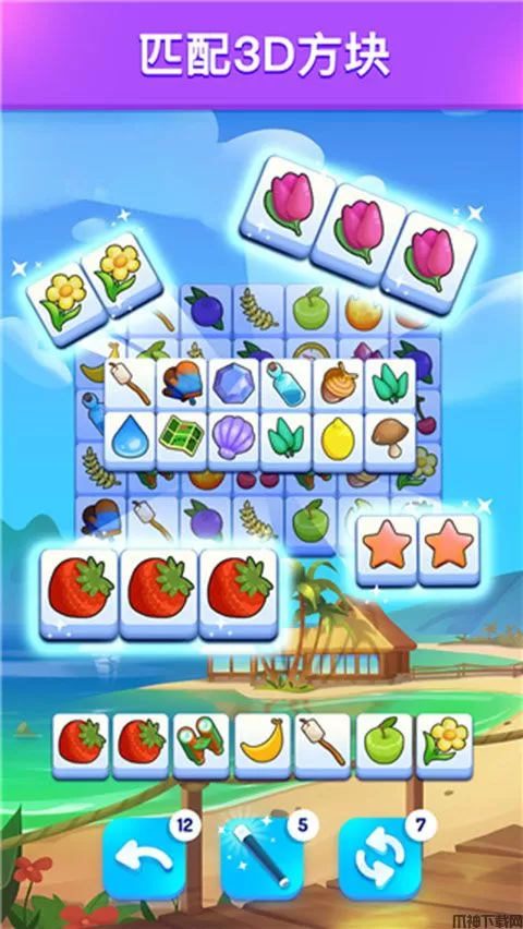 1、只需轻点一下即可将方块堆积起来。三个相同的方块即可配对。