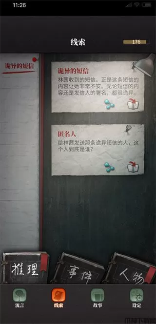 每篇阅读完以后,都会有一定的线索,我们可以打开下面的线索一栏,打开以后是这样子。