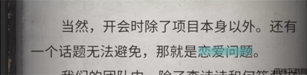 除了聊线索以外,还可以跟人物对话,右下角有个绿色小折角的时候,就代表可以进行对话了,这个也是可以推进主线的发展。在把所有的线索都聊过以后,就会触发新的剧情,比如这样。