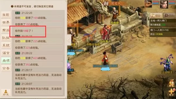 此时再次升级需要的经验较高,可以开始做师门任务升级。