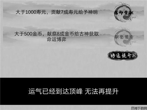 信仰有信仰贡献和献祭博弈,一个是用寿命一个是用财富。这个是突破境界最有效的方法,我通常刷会把运气刷满。虽然有广告,不过一边看电视一边刷一下子就可以刷满,刷满会有提示的,当出现运气已经到达顶峰无法提升就满了。