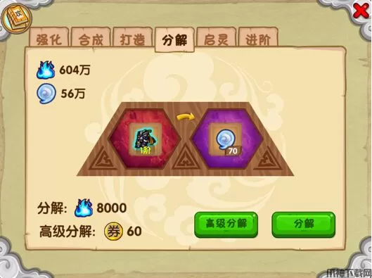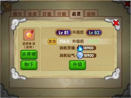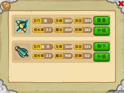 4、游戏之中还有法宝道具,玩家可以升级法宝来获得巨大的属性提升,只不过游戏后期法宝升级需要些龙女眼泪,这个材料比较难获得。