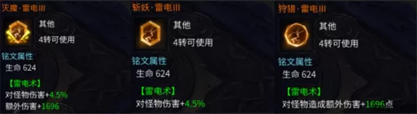 注:1/2/3/4级铭文只能在1/2/4/6转以上装备镶嵌
