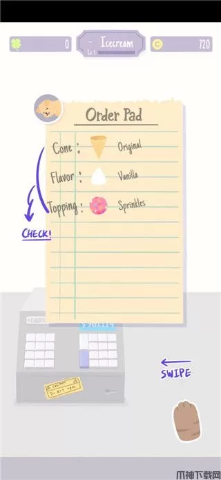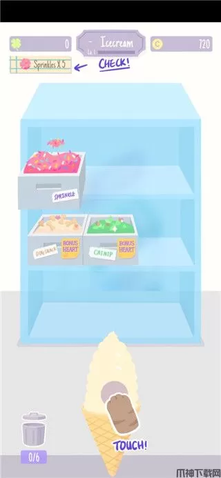5、选择猫猫,按照它给出的订单为其制作不同口味的冰淇淋;