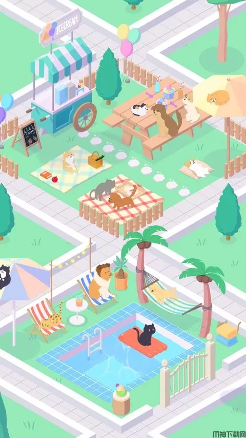 4、有野餐垫、沙滩床、游泳池、BBQ派对烤架,备有100多种野餐家具、围栏和瓷砖。根据喜好装饰它;