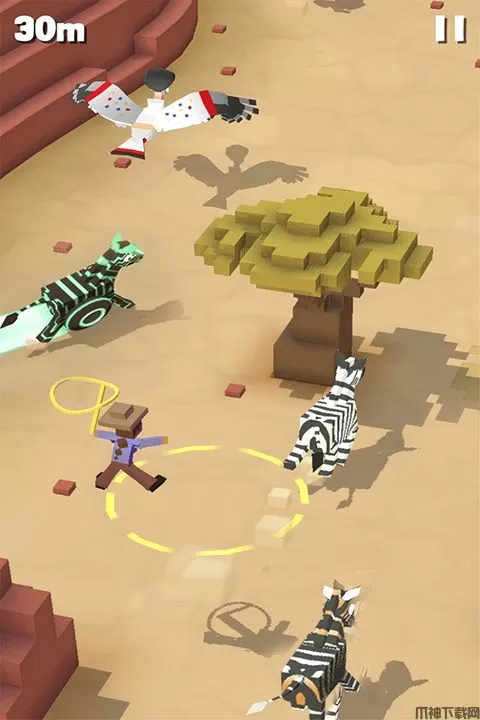 疯狂动物园苹果版是一款跑酷与模拟养成结合的游戏,这里就是一个疯狂的竞技场,玩家扮演敢于冒险的牛仔,在高速运动的情况下要与其他动物一较高下。游戏采用全3D像素,让你体验超赞的游戏体验。