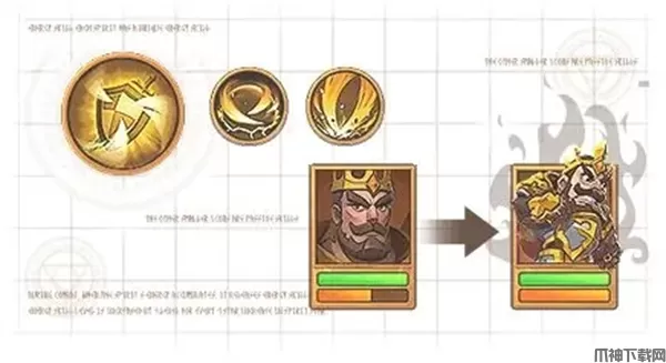 英灵升阶可以提升英灵的多项属性值。激活符文需要使用时光之井中产出的升阶材料。每激活一个符文都可以获得属性提升(物攻、法攻、物防、法防等),激活6个符文后,可使用金币完成一次升阶,获得带兵数量提升。
