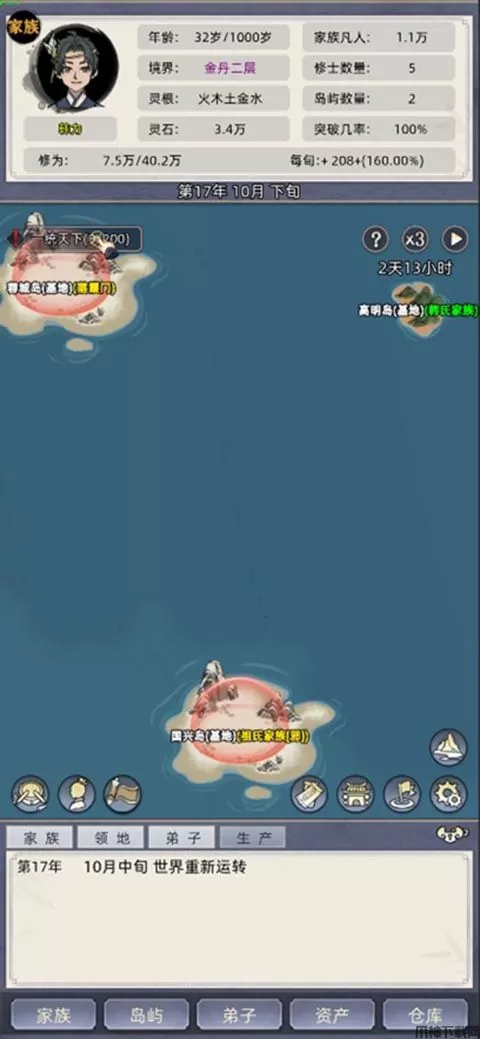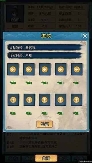 3、游戏采用文字挂机方式进行,你可以派遣家族子弟攻打其它小岛家族