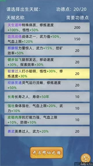 2、选择好自己所需的天赋名称,即可点击开启修仙之路