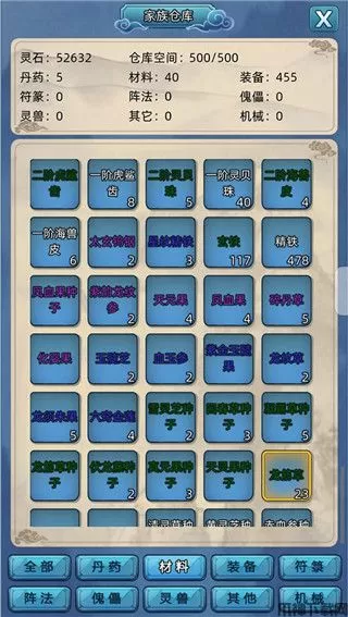 家族建筑分为炼丹坊,炼器坊,矿产和灵田