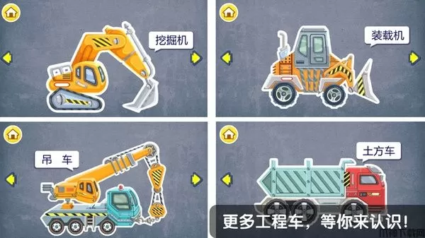 宝宝认工程车是一款有意思的儿童教育游戏,通过给游戏中4款不同的工程车组装和驾驶两个环节让宝宝体验驾驶的乐趣,同时也认识各种工程车。