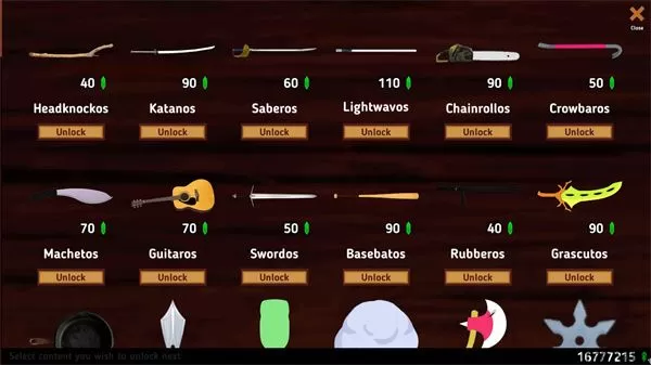 2、不同类型的武器:投掷武器,手枪,猎枪,自动步枪;