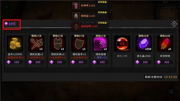 6、你不能停止随机冒险,在元素地牢里得到很多宝物自由强化你的角色。