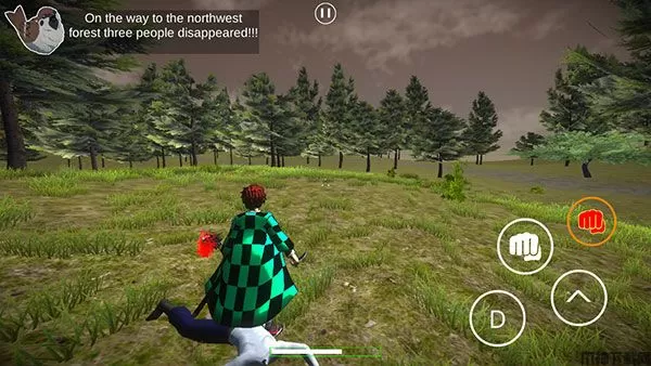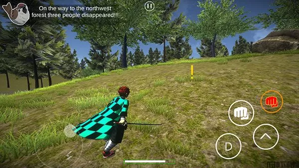 4、在屏幕左侧滑动可以呼出操纵角色前进后退的移动按钮,游戏内左上角是任务目标,对应在任意方位的一个感叹号,控制角色朝着感叹号奔跑。