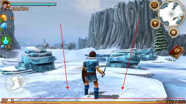 5、经验条:在游戏中我们和一些环境进行互动,或者击败敌人后即可获得经验,当经验条满后我们就能够升级,升级后能够在升级选项进行一些操作(后面会讲到)