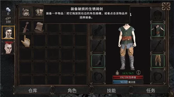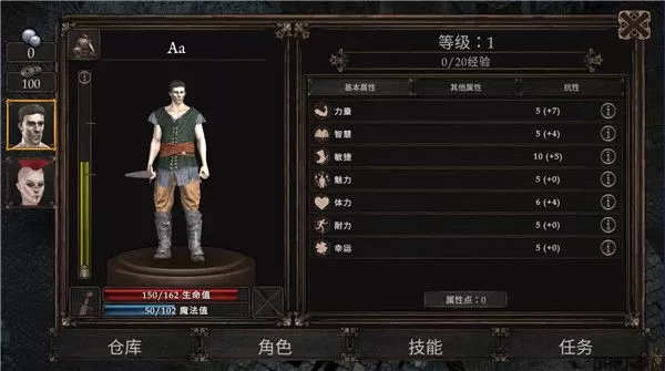 3、菜单界面可以看到角色的属性情况以及技能和需要完成的任务,多去完成任务可以获得经验和提升等级