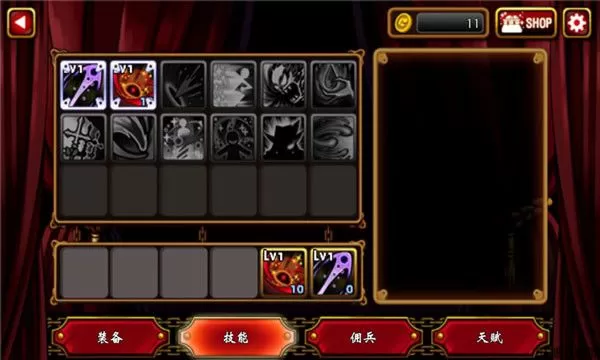 你的装备,你的技能,对你闯关十分的重要,这里有专属的页面,可以供你强化和使用。
