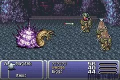 如果少女没有被打成战斗不能的话,可以使用魔导甲攻击的最后一个选项,导弹攻击,一次可以打击头部大约400多一点的HP,BOSS总共HP是1600,所以基本上三四轮打击过后就结束了。消灭蜗牛后进入矿井,发现幻兽之后神秘少女跟幻兽产生了共鸣,维奇和比克斯受不了这巨大的共鸣而被无情地消灭,神秘少女随即也昏了过去……