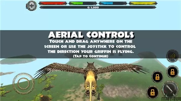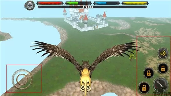2、游戏中,左屏幕,可以控制狮鹫的移动的方向;