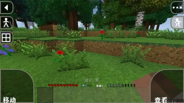 6、游戏中,玩家可以操纵角色进行移动和建造建筑,点击右上角眼睛图标,你还可以调整游戏视角;