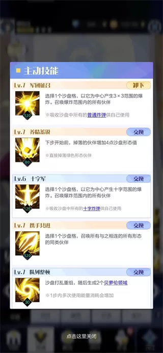 补充:伙伴位达到6格后沙盘使用效果相当优秀,lv8沙盘发挥稳定一些的话基本能够在第二轮消除结束前憋出三个金