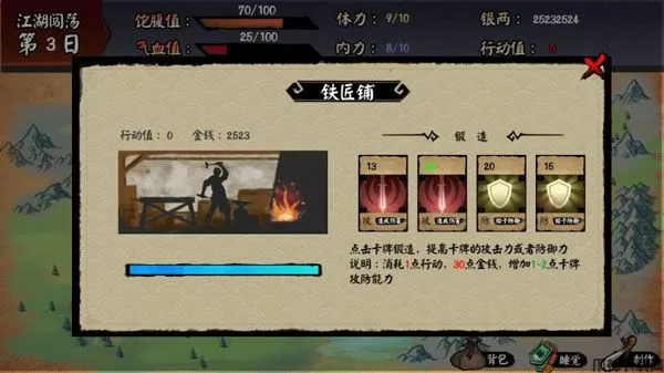 同时基础牌可以在 武器店进行强化升级,但需要消耗一定的银两和行动力。