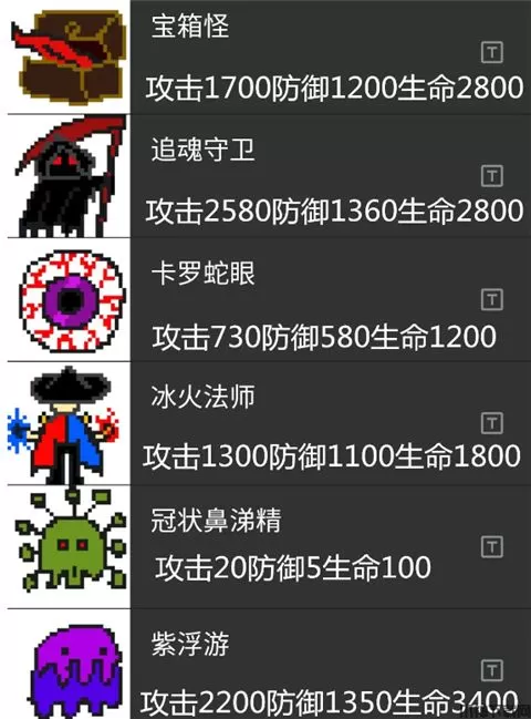 14层以上编号27之后的怪物三项基础属性全部提高300