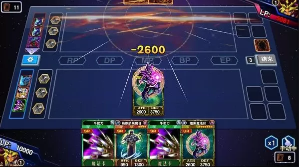 可以看到图例中,玩家拥有10000点血量,对手则拥有8000点血量。当一方的血量降低直0以下时,判定该方失败,战斗宣告结束。