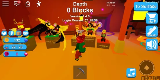 5、除此之外,还有其他各种各样的商店,能够尽情的购物,甚至还能买到对应季节的节日装扮,而且名列前茅的矿工们会有专属的雕像展示,下方还有名字和总资产,非常有成就感。以及还有许多有趣的任务,但需要一定的条件才能解锁,加油吧,挖矿少年们!