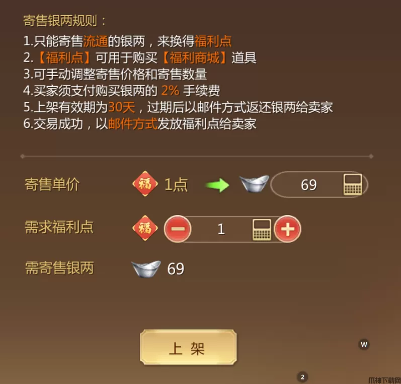 5、福利点货币可在交易行通过银两寄售获得,获得的福利点可在福利商城购买珍贵的道具。