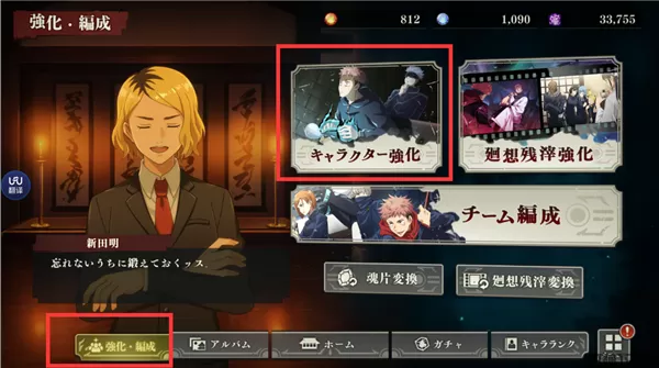 下方的强化·编成中可以选择对角色和回响卡牌进行强化操作。