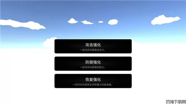 3、开始之前,选择一种强化技能,包括攻击、防御、恢复等。
