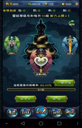 新大主宰中“雷神体”是一项福利性质的属性增强系统,玩家20级即可打开“雷神体”进行修炼,在日常的活动,推图战斗,副本战斗,PVP战斗等多处都会掉落用于“雷神体”修炼的经验。修炼“雷神体”可以获得生命、防御、攻击三个层面的属性加成,并且当三个属性等级想加为10或10的倍数时,可以增加角色的耐力上限值1点!