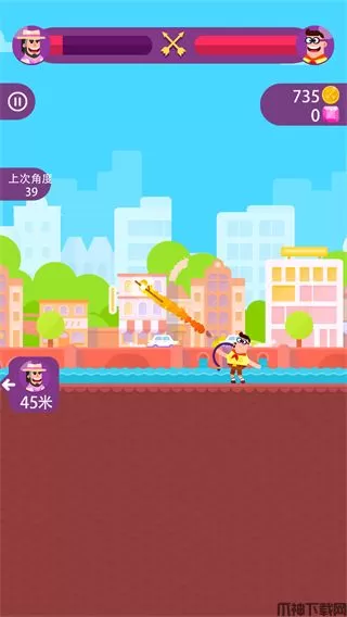 1、玩法就是拉弓箭,玩家可以控制弓箭的力度和角度,让弓箭发射出去,准确射到对方的身上。