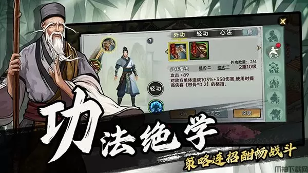 4、玩家可以通过武功界面学习新的武林绝学,后期还可以学习轻功、外功等各种武学。