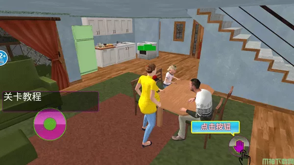 1、游戏中你扮演的是一名家庭主妇,你需要通过左下角的摇杆移动到指定位置。